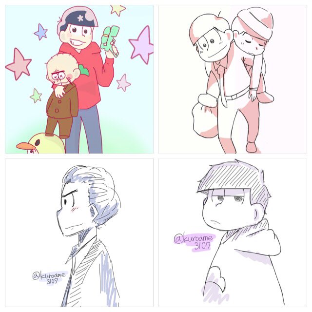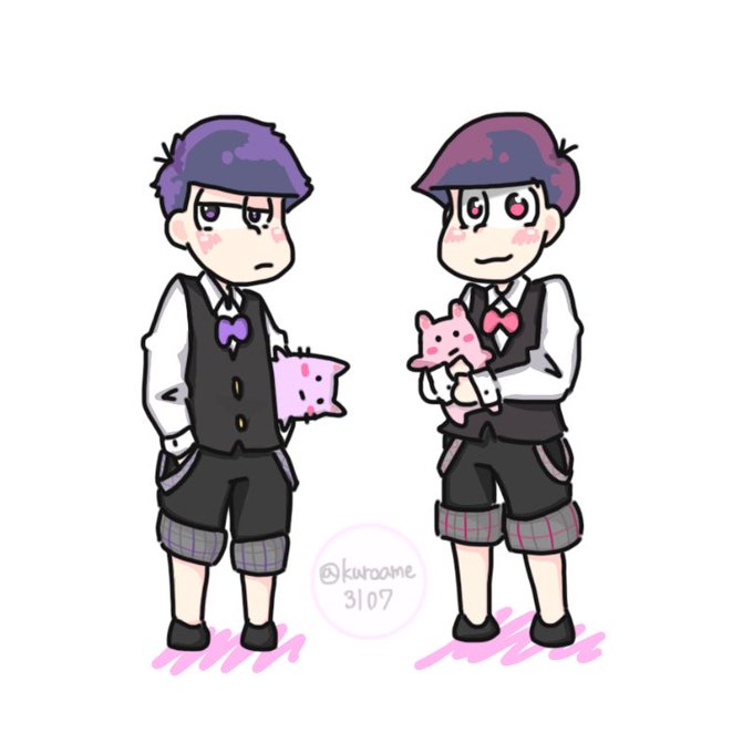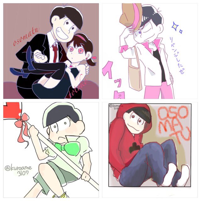 絵柄が全然違うんだよねぇー やっぱ線は太めの方が書きやすい 一番古いのがドレスアップ風おそとと。 一番最近のがサイバー松。 #おそ松さんクラスタと繋がりたい