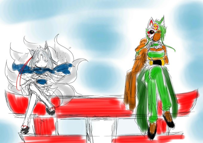 今日は落書き。 つか九尾ズほとんど着けて無さそう #世界ノーブラデー 九十九はほら俺の隣に居るんで…
