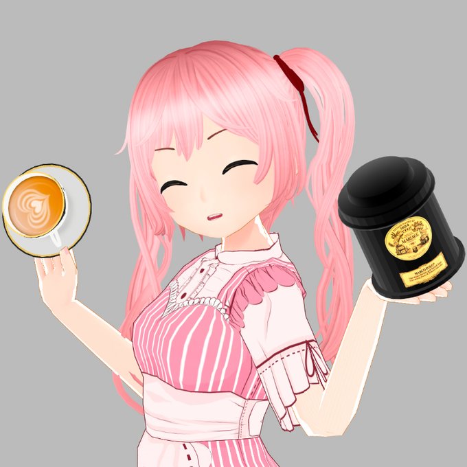 #さべさべ 進捗 冬休みの間にるんちゃんの髪が伸びた!切らないと! 第四話用の小物のモデリングが進んで、順次撮っていってます アンゴルモアイメージのカップやお皿をデザイン。紅茶缶は実在のブランド✨