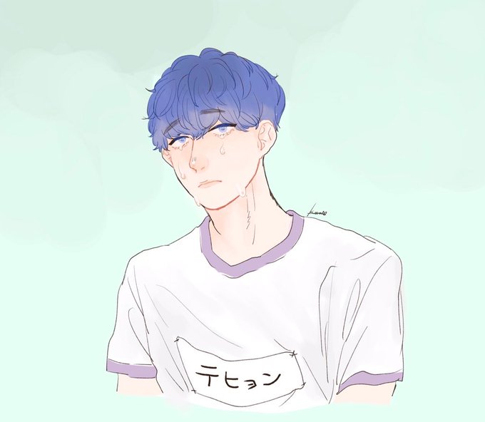 絵をリメイク〜のタグ!記念すべき1枚目です💜 みさん(@yoonngi_luvluv)の可愛いベソベソ😭てひょなをお借りしました!楽しかった…💕🐯