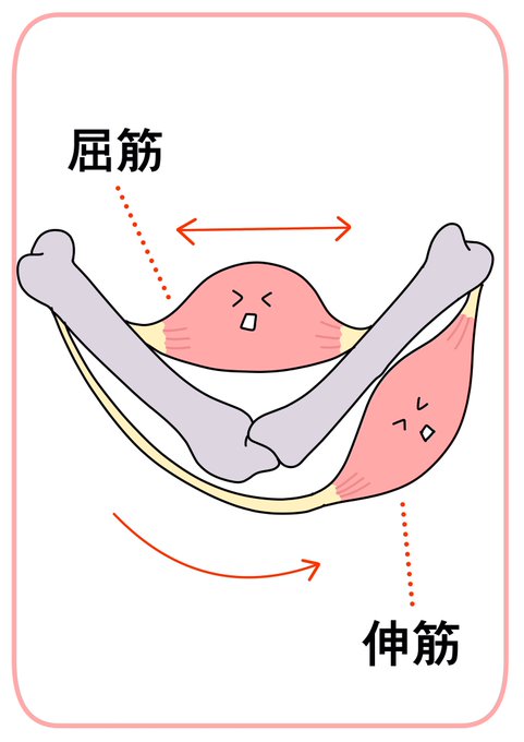 筋肉には身体を内側に曲げる「屈筋」と、身体を伸ばす「伸筋」があります。