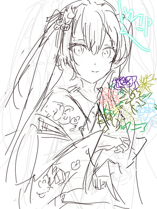 ミクイラの線画もう少しという所で久々wip🧚♂️✨
