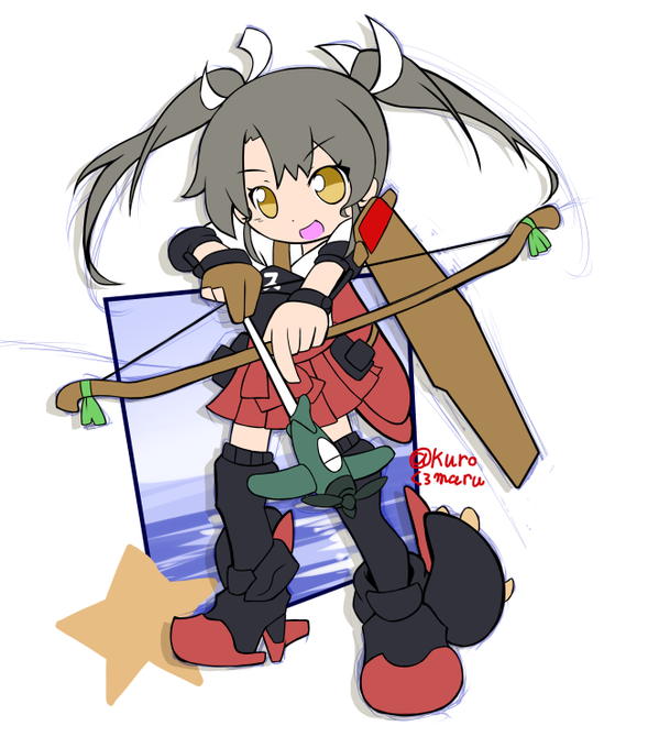 #艦これ版深夜の真剣お絵描き60分一本勝負 ぷよクエ風瑞鶴描いてみた! さすがに残す線選びが大変で途中までですが・・・
