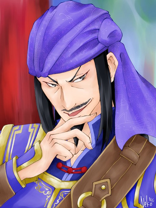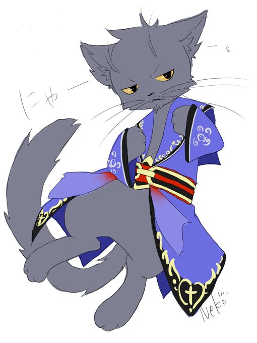ずっと荀攸殿猫國参戦してから俺の画力の問題でポンポンにベルトは苦しそうになってしまい可哀想だからと防具肩の布だけにしてたの気になってたから落書きだが描いた。が、構図が魔法で猫にされた荀攸殿になった。
