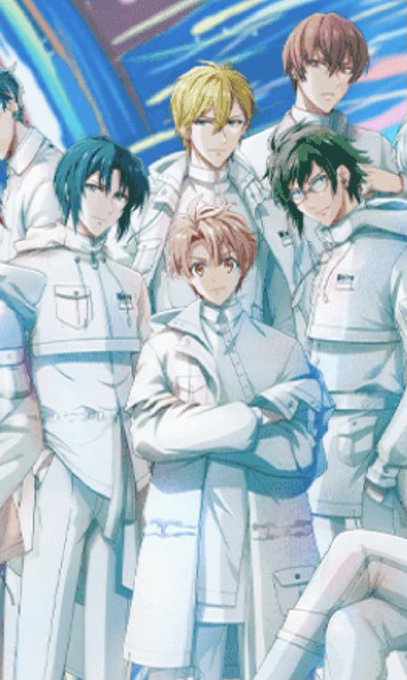 ログイン画面の三月くんが最強布陣で囲まれて姫状態、本人腕組みしてドヤッて不敵な笑み浮かべてて、背が低いからちまって前列に収まってる、全部のギャップが最高にたまらんくて和泉三月最高かよ🧡🧡🧡