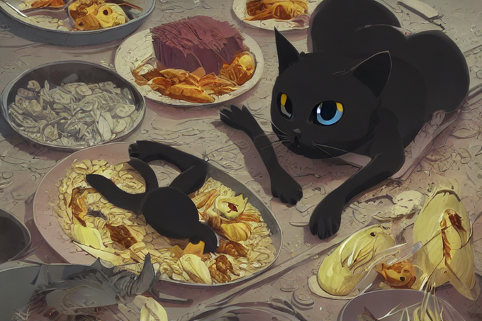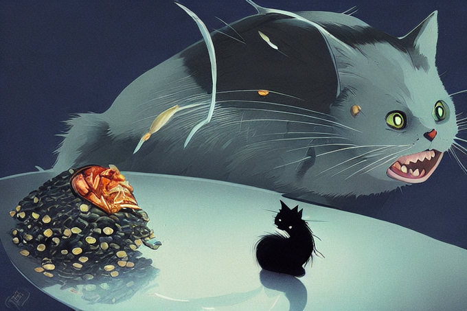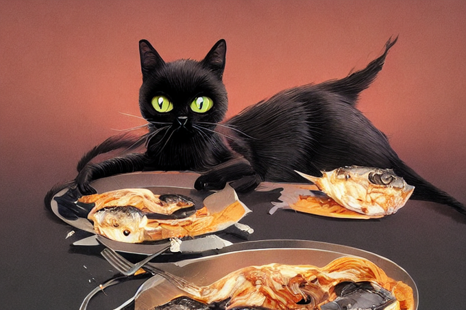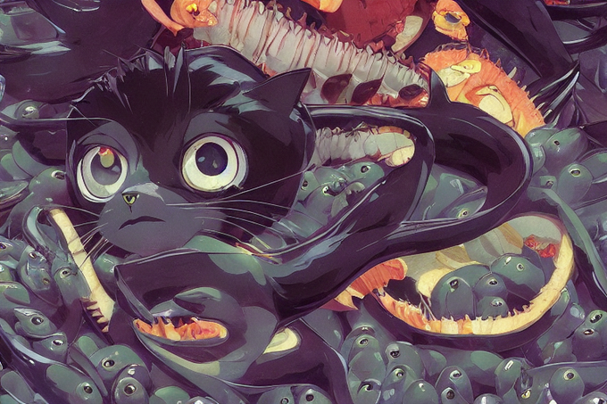 『黒猫と混入するフグ』#イラスト #アート #stablediffusion