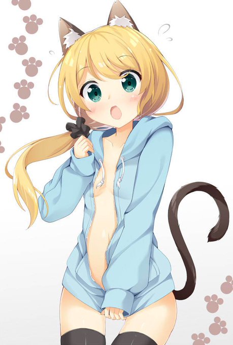 「裸パーカー猫耳尻尾ニーソ」/「まっちゃ@お仕事募集中」のイラスト [pixiv] https://t.co/X1JT7NbYz8