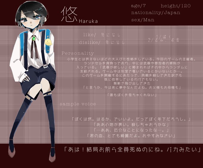 【NPC】 悠(ハルカ)[@nui_susk(主催)] ______________ 「はるか、でいいよ。だってぼく年下だろうし。」