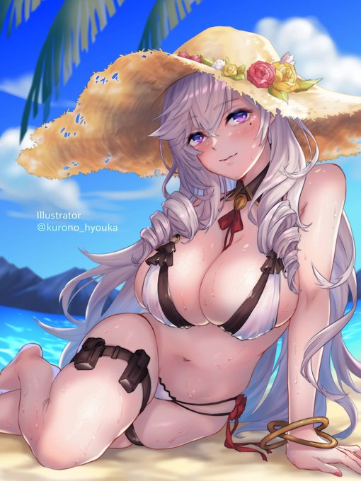 「あら、ふふふ…一緒に日光浴はいかがかしら?」 アルジェリーちゃんの水着スキン完成です(#' '#) いい感じに描けました❣ #アズールレーン #アルジェリー