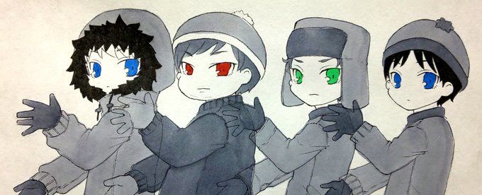 やっとこさ出来た自己満ラグ🚃PVパロ的なやつ(全部同じポーズ) ファンタジーごっこ+マジョリーン ※自分絵サウスパーク https://t.co/HRWADrG6zD