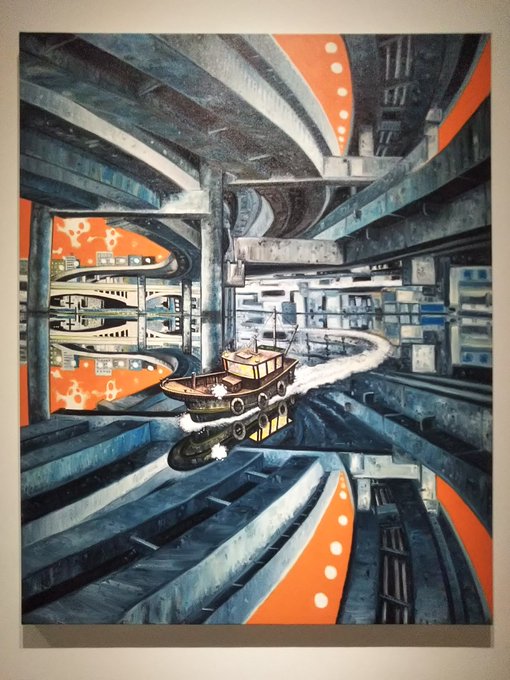 「百年の編み手たち」。本展は一部のみ撮影OK。鹿子木孟郎《大正12年9月1日》は入念に構成された一種の"歴史画"。関東大震災の影響力の巨大さは、美術に限らずあらゆる分野で出くわす。 #東現美