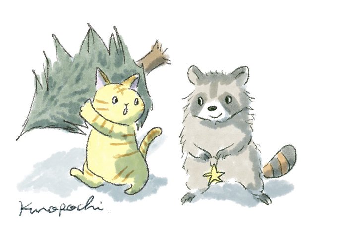 【 #クリスマスツリーの日】 「ツリーの飾り付け手伝おうか?」 #アライグマ #今日のデジ絵