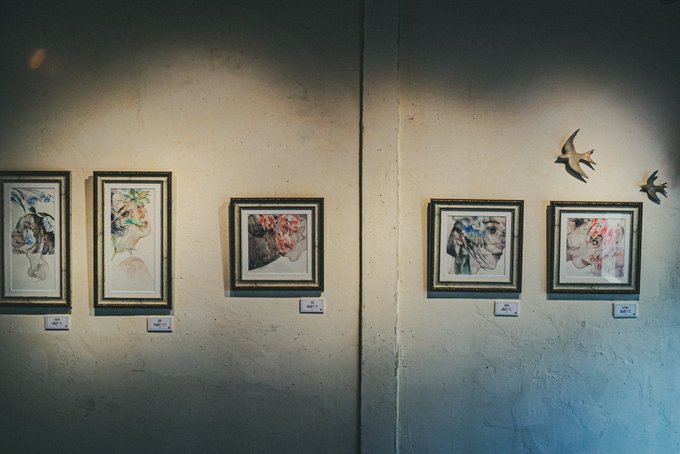 2階で開催中のユエさんの個展