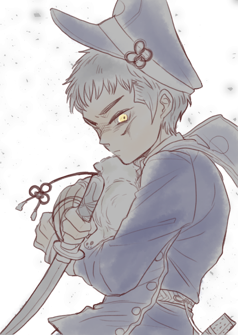 五虎退てつやさんと5スピッツ。しょたです。 戦闘モードもらくがきしてみた。