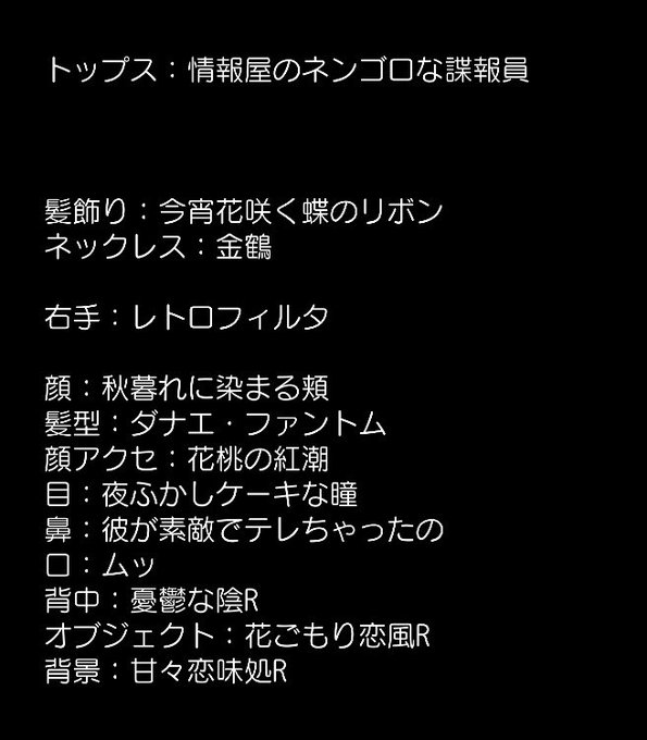 #農園秋コーデ #農園婚活大正浪漫 ※フォローじゃなくリストで拝見してる為、コーデツイのみ参加失礼します( ˊᵕˋ ;)💦 「四季は変われど 気持ちよ移ろふ事なかれ」 背景とオブが右→左に流れる点もお気に入りです(*´꒳`*) 秋になり肌寒くなると人が恋しい季節かなと、このコーデにしました☺️