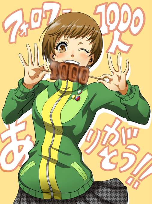 日付変わっちゃったけど、フォロワーさん1000人超えました! 里中千枝ちゃんと皆さんのおかげです!ありがとーーー!な絵