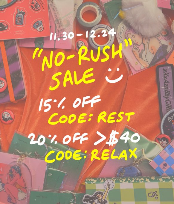 “no rush” sale starts today! let’s take our time, code lasts through 12/24 🌴