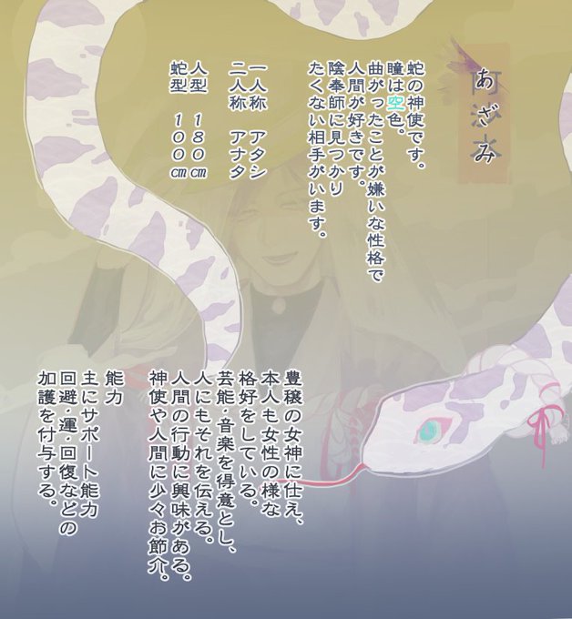 企画 神喚びの召眷士(@kamiyobi_TL )さんに参加させて頂きます! 神使のアザミオネエさんです。よろしくおねがいします! #カミヨビ #カミヨビ_神使