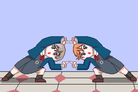 かのんちゃんとクゥクゥちゃんのダンスバトル? #クーカー #pixelart #ドット絵