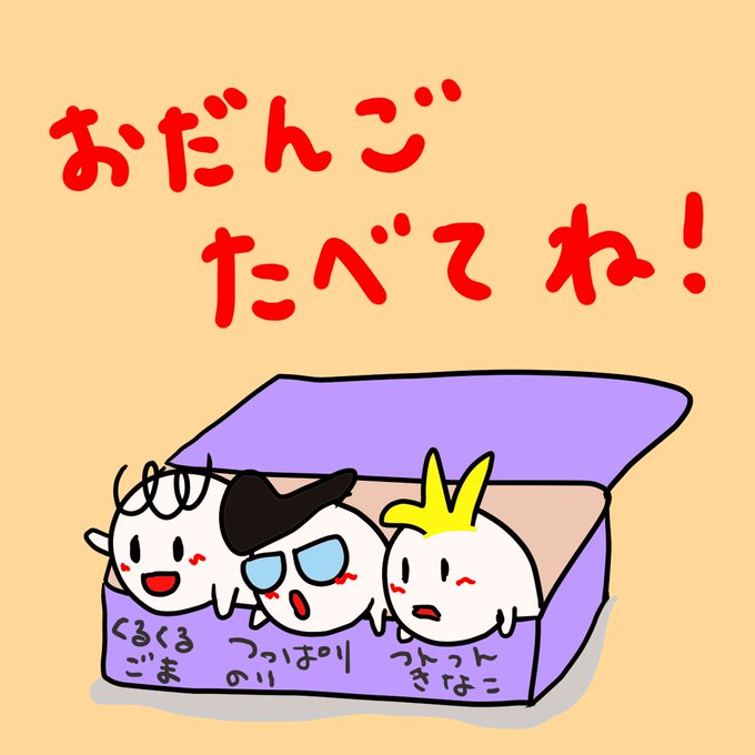 おだんごたべてねぇー!(☆∀☆)#イラスト #おだんご #食べ物 #夜ご飯 #ゆるキャラ
