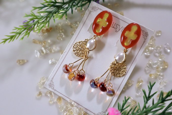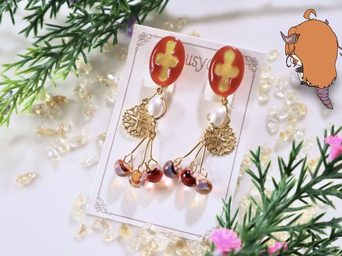 voxさん👹🧧イメージアクセサリー withおちゅわり 和テイストで作成すると決めておりました.....。 声がほんま、ほんまにいいから見てくれフォロワさん。 因みにタッセルは作りました(✌'ω' ✌) #Akurylic