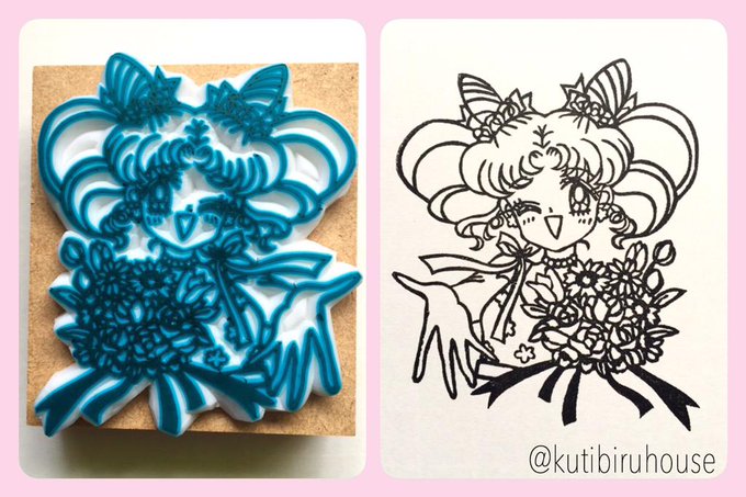 セーラームーン新装版12巻にある、ちびちびちゃんのイラストではんこを彫りました♡ サイズは45mm × 50mmくらい(*^^*) #セラムンはんこ #セラムン工作部 #消しゴムはんこ