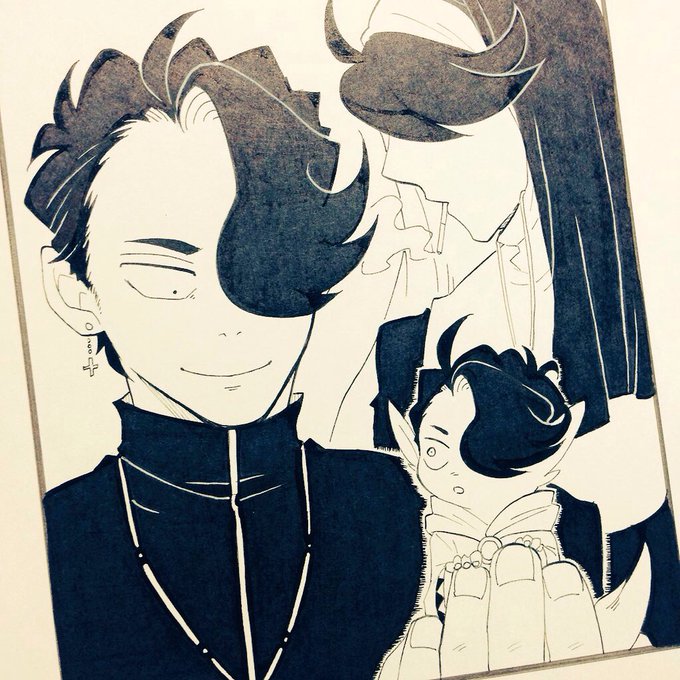ヤング裏ランチトリオ ちょっと影付け失敗した…スティーブンの手が血塗れに見えるw