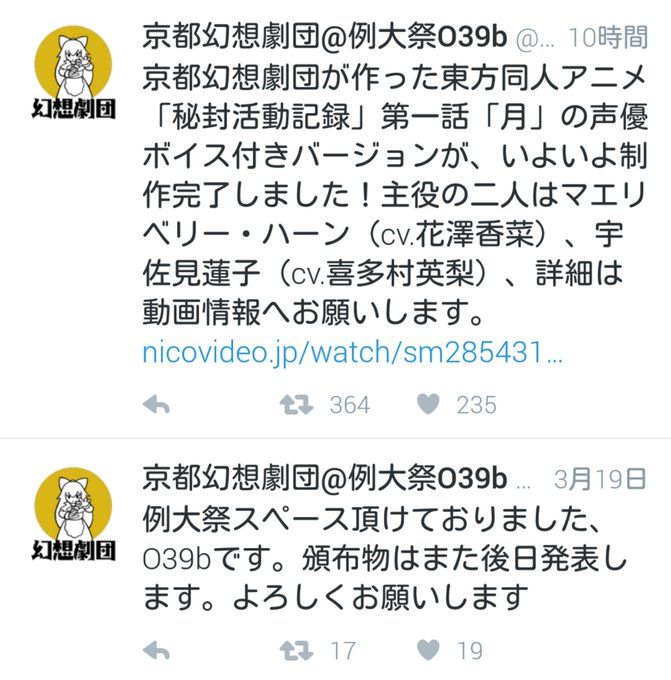皆さんもうご存知だと思いますが、何と 京都幻想劇団より同人アニメの発表がありました。可能な限り調べさせて頂きましたが、嘘では無いと思います。 画像は何回かに分けてツイートします