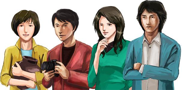 キット塗装の感想待ちの間にお絵かき。動画のための探索者達の暫定立ち絵が出来た。これから表情差分、衣装差分を作ることを考えると気が遠くなるな。
