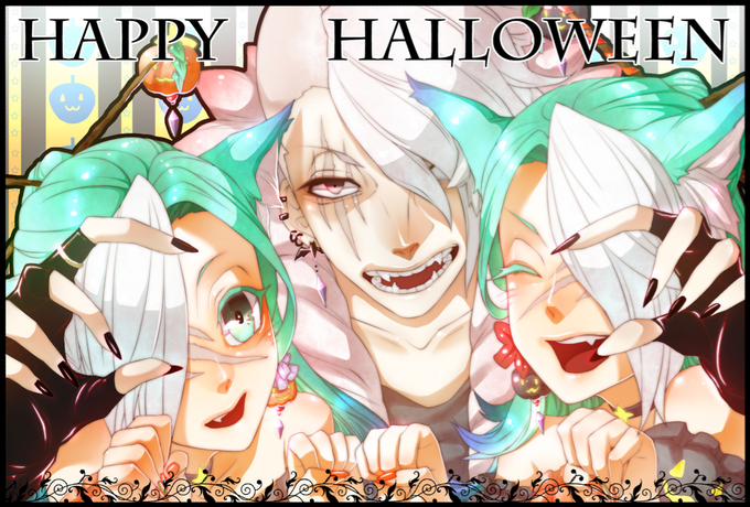 \ガオー/ \(川ω')^ω^(>ω川)/ /お菓子くれなきゃ食べちゃうぞー\