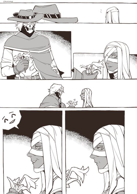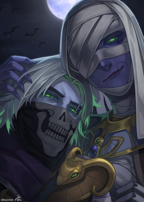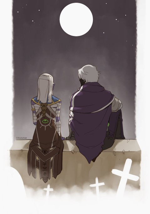 この時期になるとアンデッドキャスがちょっと早めに墓から出てきてミイラアナの墓の前で花持って待ってる世界線の話です😌 アナは数百年に一度くらいしか起きてこないけどキャスは毎年起きて花を供えに来るし 会えた年は一緒に月を眺めて過ごして明け方までにまた墓に戻る