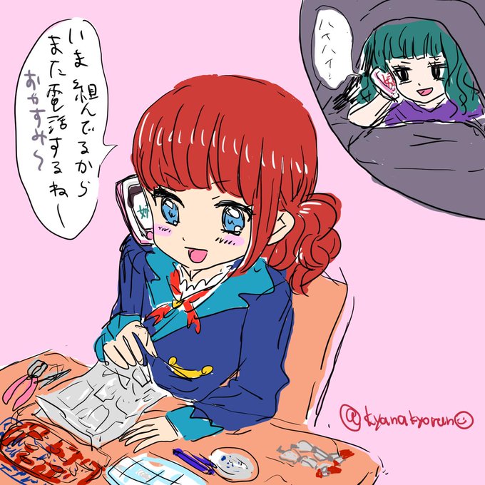 妹にお電話。切られました。妹はプラモアイドルしょこらちゃん。 妹のマイキャラちゃんです #アイカツマイキャラ深夜の真剣お絵描き60分一本勝負