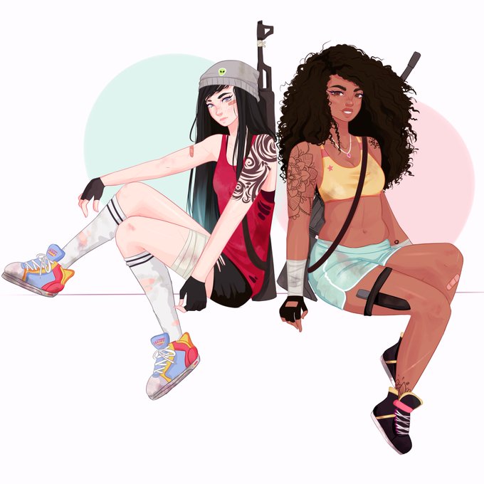 My girls after a long fight against the aliens ✨ super happy w this tbh #art #artist #digitalart #originalcharacter https://t.co/Va057xzY4G
