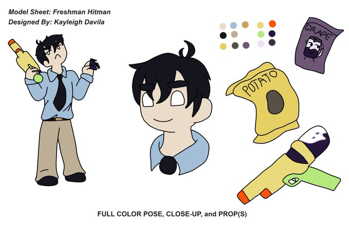 @PuccaNoodles This is Freshman Hitman. Think Gumball Watterson except he thinks he's an assassin in a really shitty edgy anime but restricted by TV-7 rules. He's my favorite OC lol.