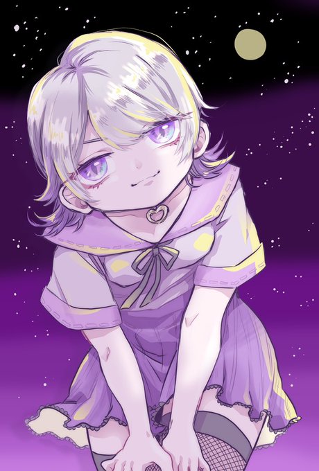 月紫ちょび【@tsukushityobi 】さんのファンアートを描かせていただきました! 制服バージョンに勝手にアレンジしてみました😌文字なしと白背景の差分はおまけです🙋♀️ 企画へのご応募ありがとうございます🙇♀️💕 #月信簿 #紫の月夜絵