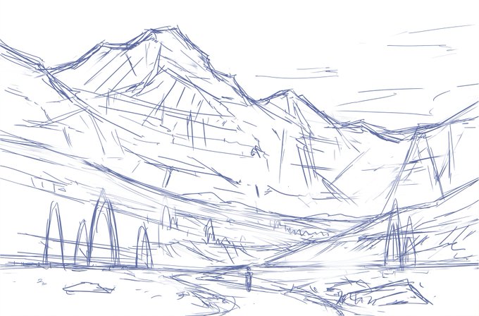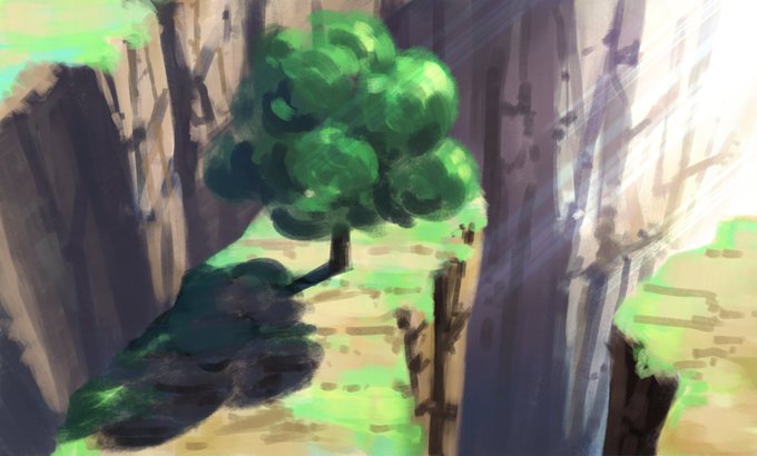 【新作】見下ろしの崖を描きました。また修正するかもだけど・・いったん完成とします。