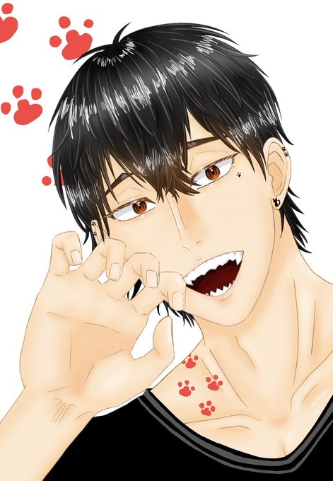 #イラスト #illustration #創作 #男の子 「にゃん」