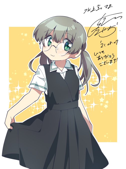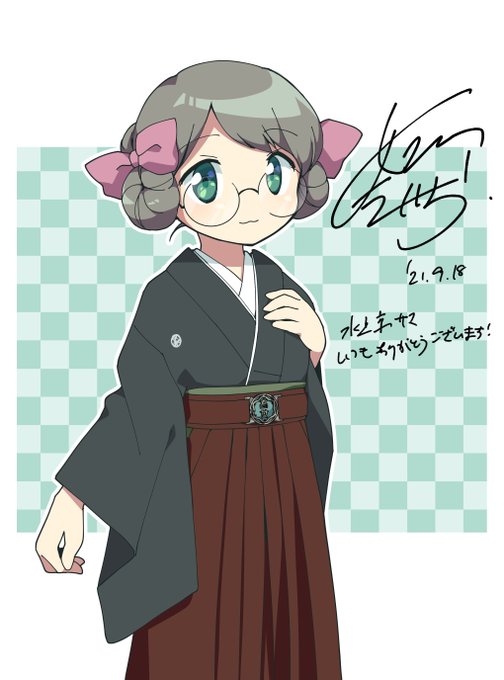 姫川先生にいつもの眼鏡っ娘の昔の袴制服を描いてもらいました。