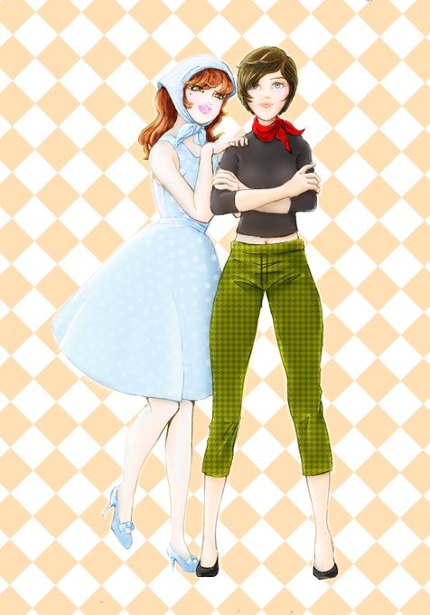 2人全身、さすがにキビシー(*´・ω・) 背景もウーン…次は🐞に戻ろう #お絵かき初心者