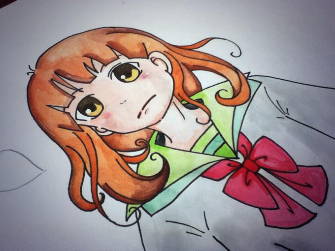 眠気覚ましに描きました。 ので雑でふ。 顔失敗! ちなみに色鉛筆兼絵具です