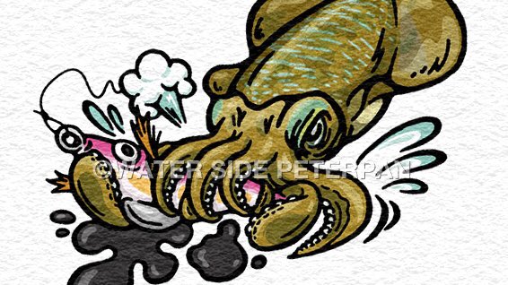 #ウォーターサイドピーターパン #ステッカー #BITEシリーズ #エギング #アオリイカ #Artworks #adobeillustrator #clipstudio #illustration