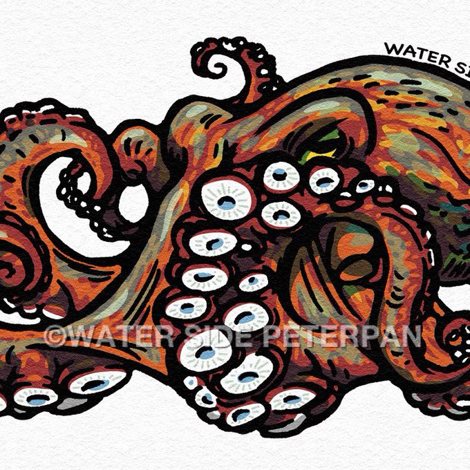 #ウォーターサイドピーターパン #ステッカー #真蛸 #蛸 #タコ #マダコ #octopus #artworks #adobeillustrator #clipstudio #illustration