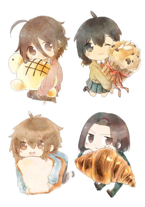 らくがき本に付いてくるシール用のイラストできました╰(*´︶`*)╯♡ (僕が)パン好きなのでパンをかかえてもらいました🥐🍞🧁🐢