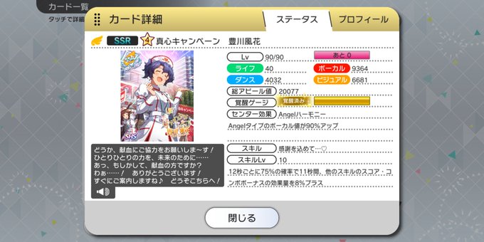 こちらのカードはWelcome!セレクションチケットの対象内なので未所持の方は是非どうぞ #ミリシタ #豊川風花