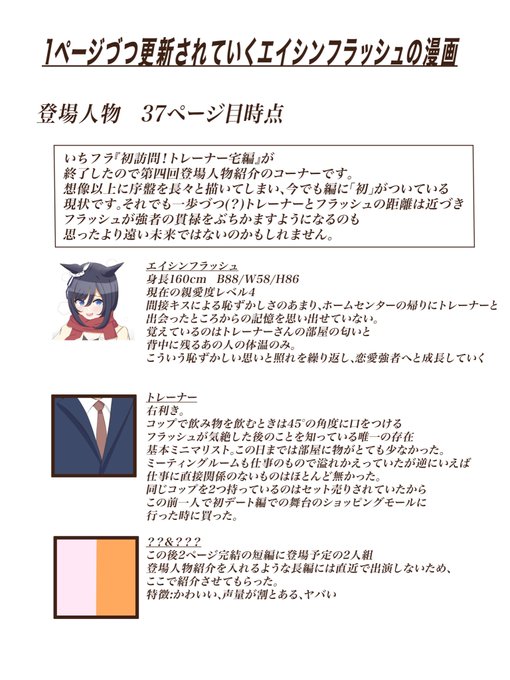 初訪問!トレーナー宅編⑪(終) [月曜日が好きになった日] 長編が終わったので登場人物紹介もあります。 #ウマ娘 #エイシンフラッシュ #1ページづつ更新されていくエイシンフラッシュの漫画