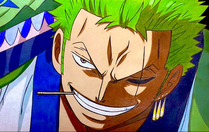 背中の傷は剣士の恥だ!! ゾロカッコイイ(*°Δ°*) 2枚目加工あり #ワンピース #ゾロ #模写 #色鉛筆画
