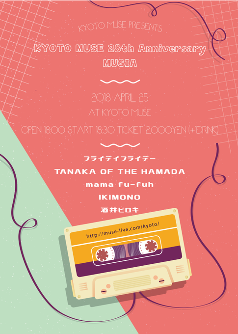 【ミューズの告知🍀】4/25(水) KYOTO MUSE 28th Anniversary "MUSIA"