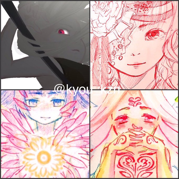 最近は創作垢でこんな絵を描いてます(「´v`)「 キョウさんはちゃんと相変わらず絵描きです