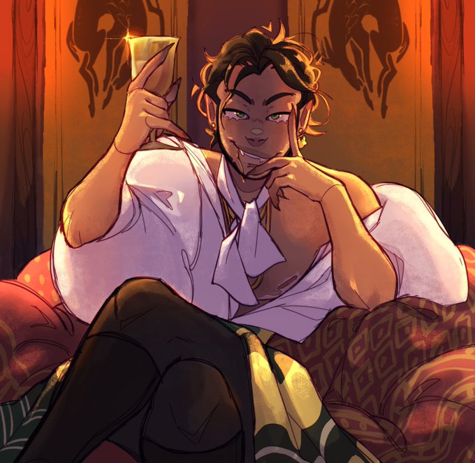 reference sheet for Jo'zhirr, the pc i started our campaign with and still play every so often ✨🐱🔮