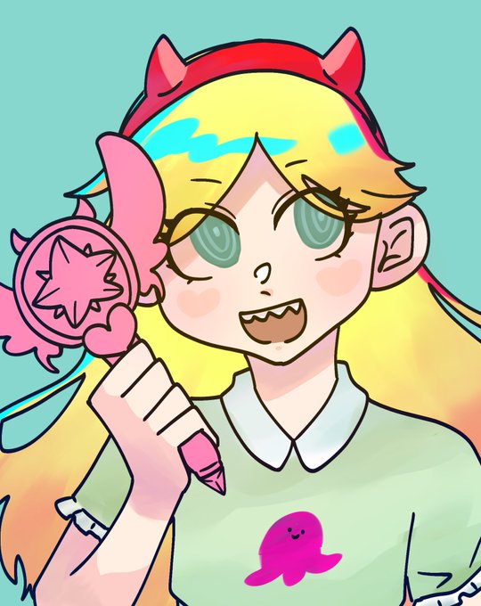 スターちゃん描き途中なんやが可愛過ぎてステッキの色忘れた